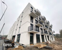 Projekt konstrukcji zespołu trzech budynków mieszkalnych wielorodzinnych z funkcją usług. Inwestycja będzie realizowana w 3 etapach. W budynku A zaprojektowano 2 lokale usługowe oraz 52 lokale mieszkalne, w budynku B – 50 lokali mieszkalnych, a w budynku C – 40 lokali mieszkalnych.