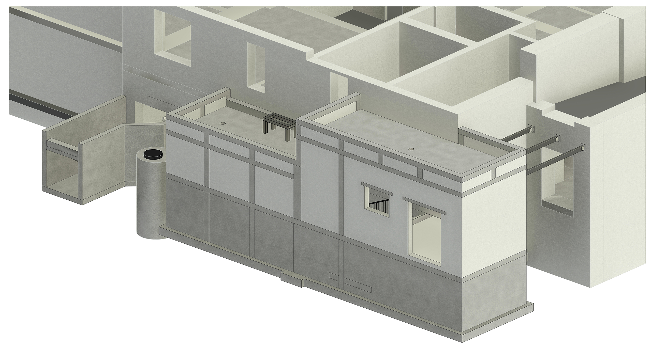 W Centralnej Sterylizatorni zaprojektowano również pomieszczenie myjni ręcznej, pomieszczenie wyrobów sterylnych, pomieszczenie wydawania wyrobów sterylnych, pomieszczenia biurowe, socjalne, porządkowe, pomocnicze i WC dla personelu.