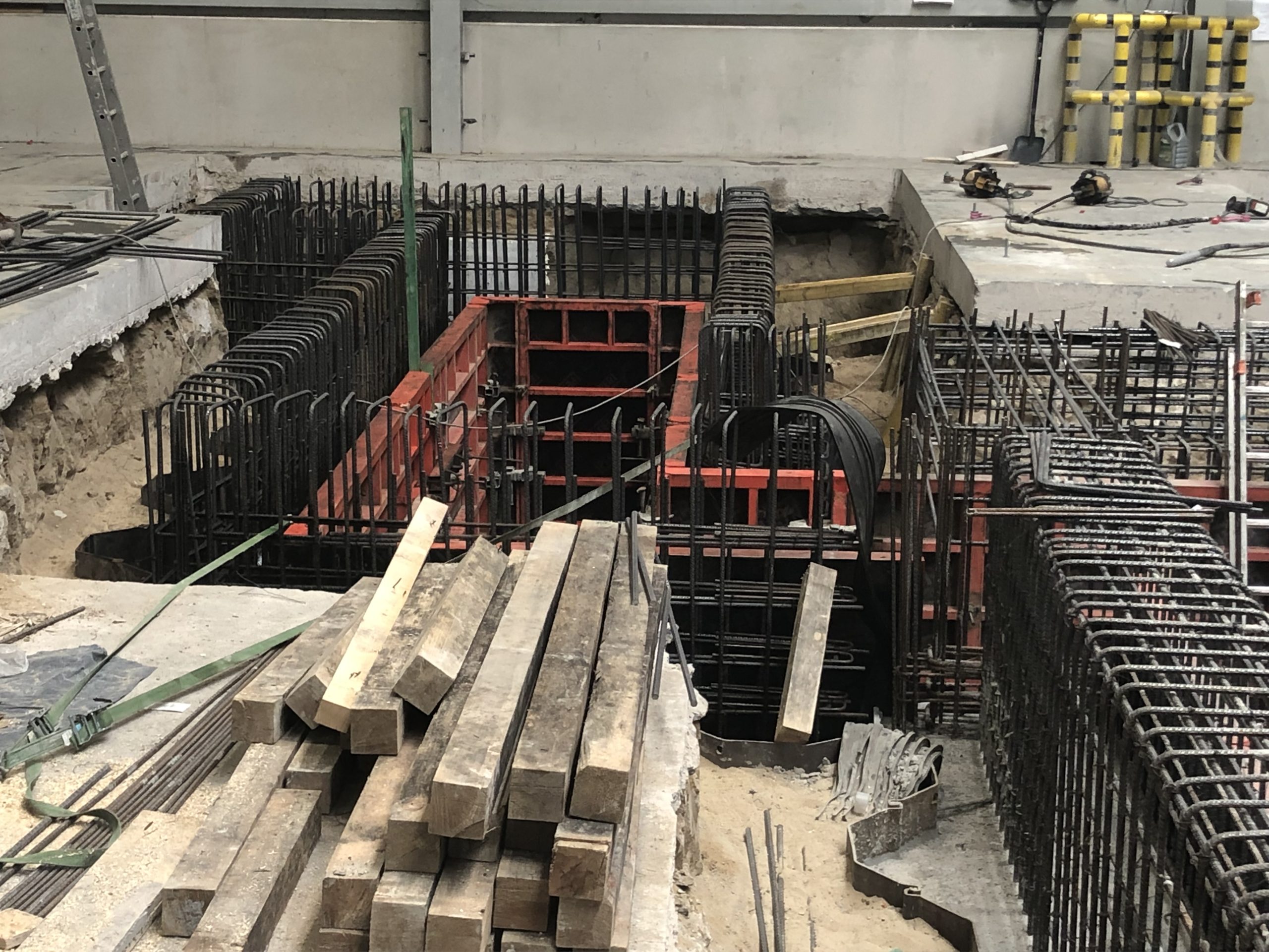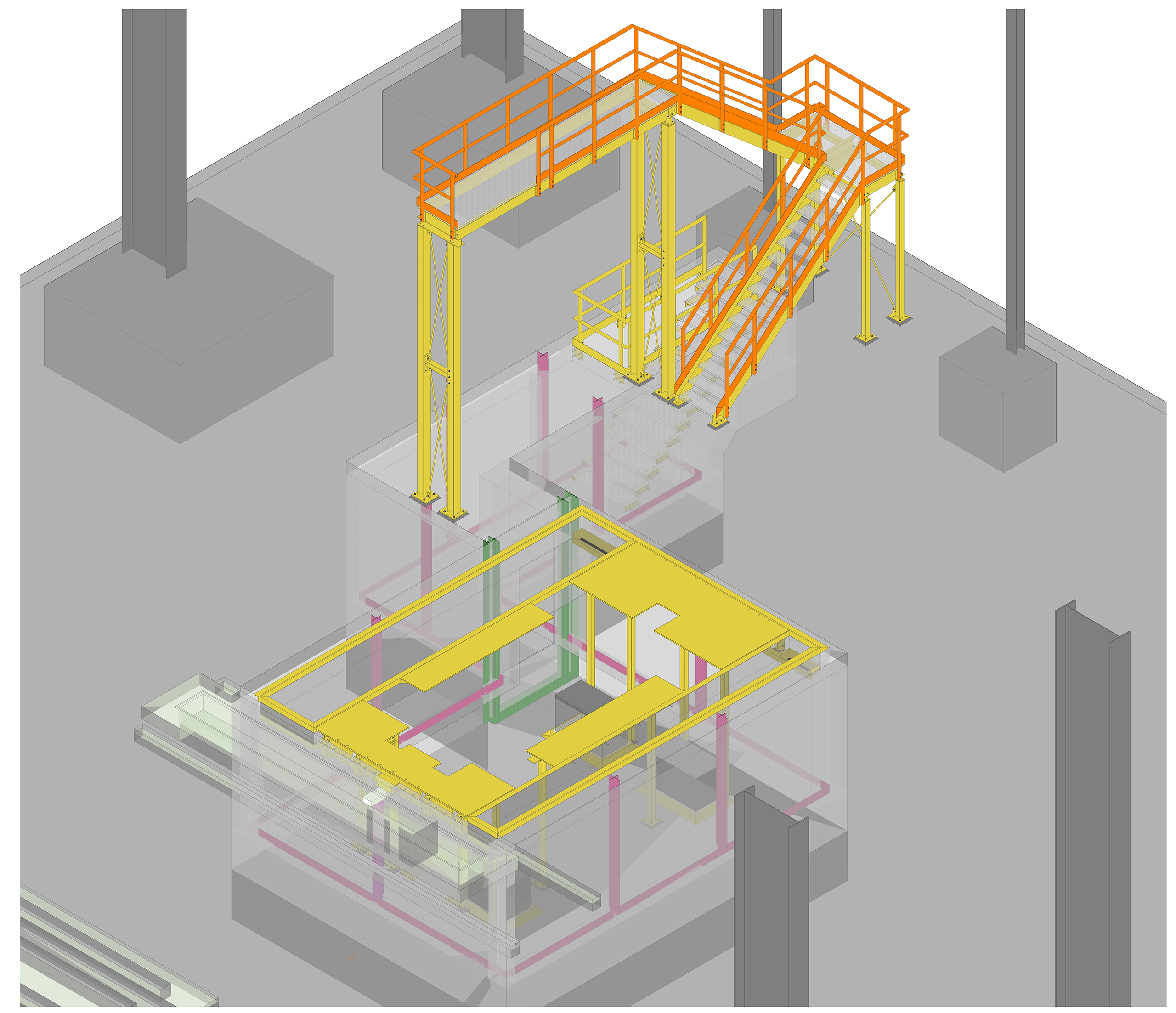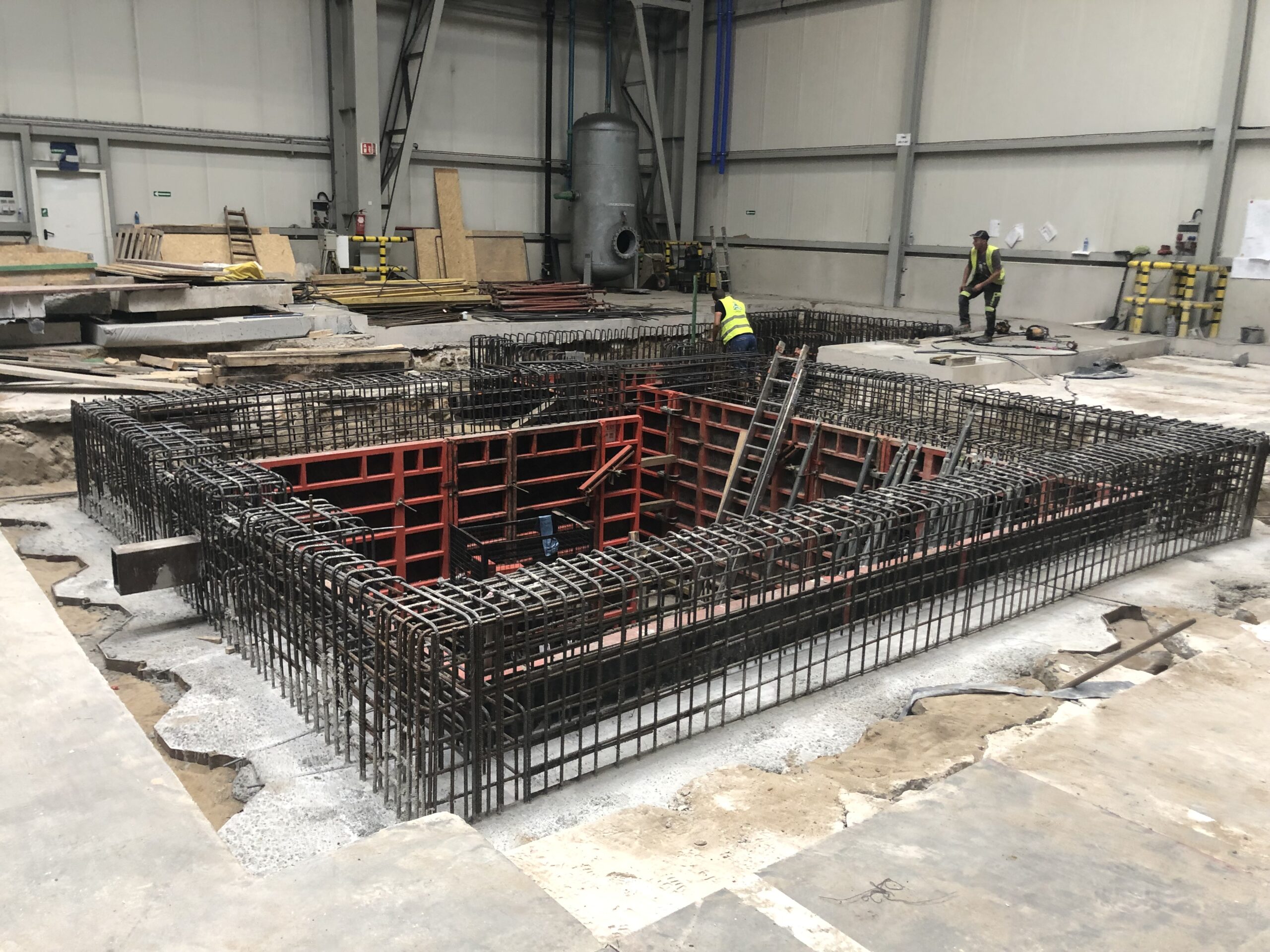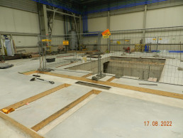 Projekt dotyczył budowy szachtu żelbetowego dla nowej prasy (tłoczącej elementy konstrukcji karoserii i podwozia) wraz z niezbędnym dostosowaniem posadzki, budowy kanału podposadzkowego, wykonania stalowego pomostu technologicznego dla potrzeb obsługi nowoprojektowanej linii prasy, analizy możliwości obciążenia konstrukcji istniejącej wiaty chłodnią wentylatorową oraz projektu wzmocnienia konstrukcji wiaty.