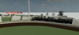 Trybuna gości zostanie zrealizowana w miejscu trybuny istniejącej przeznaczonej do rozbiórki, która ze względu na stan techniczny została wyłączona z użytkowania.