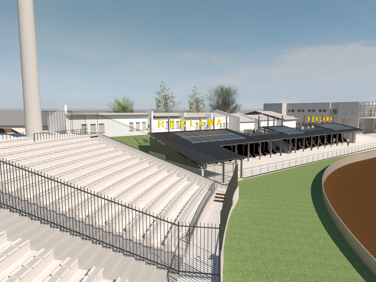 Zaplanowano trybunę ziemną. Lokalizacja i wymiary całkowite przebudowywanej trybun dostosowane do możliwości terenowych istniejących trybun. Przebudowywana trybuna w całości przeznaczona dla widzów gości – oddzielona funkcjonalnie i geometrycznie od pozostałych trybun stadionu.
